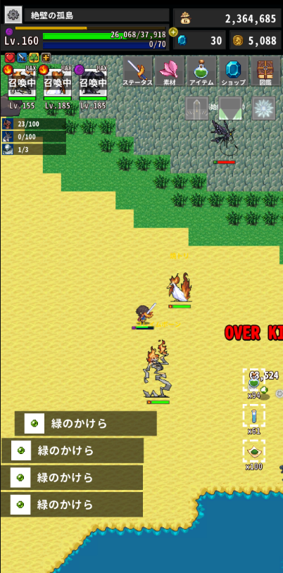 - 181レベルの海賊船を編成することで禁域ボスのドロップ率が100%となるので、禁域(森)で召喚の書を連打してまとまった数の禁域のロックを確保、獄炎装備を強化。